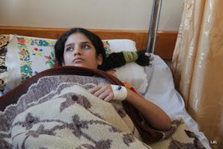 A 13 year old girl, Duaa Hejazi, was coming back to her home in Gaza’s Sabra neighbourhood, after a walk with her mother and siblings, when an Israeli missile fired on the road in front of their home around 8 o’clock at night. “I was bleeding a lot. My brother was injured too, in his hand. The neighbours brought me to the hospital” Duaa sustained shrapnel injuries throughout her upper body, with some pieces still imbedded in her chest. She would like to pass on a message to other children, living outside of Gaza: