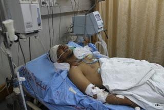 Salem Waqef, a 40 year old man, was severely injured when his home was destroyed in an attack during the early morning of 15 November. His doctors say Salem suffered a brain injury when he was deprived of oxygen. He was brought into the International Care Unit of Al Shifa hospital at 5am where he was placed on a ventilator. He remains in a coma and the doctors said he was in a serious condition.