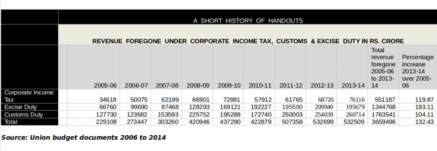 If you think sparing the super-rich taxes and duties worth Rs. 5.32 lakh crores is a trifle excessive, think again. The amount we’ve written off for them since 2005-06 under the very same heads is well over Rs. 36.5 lakh crore. (A sixth of that in just corporate income tax). That’s Rs. 36500000000000 wiped off for the big boys in nine years. .