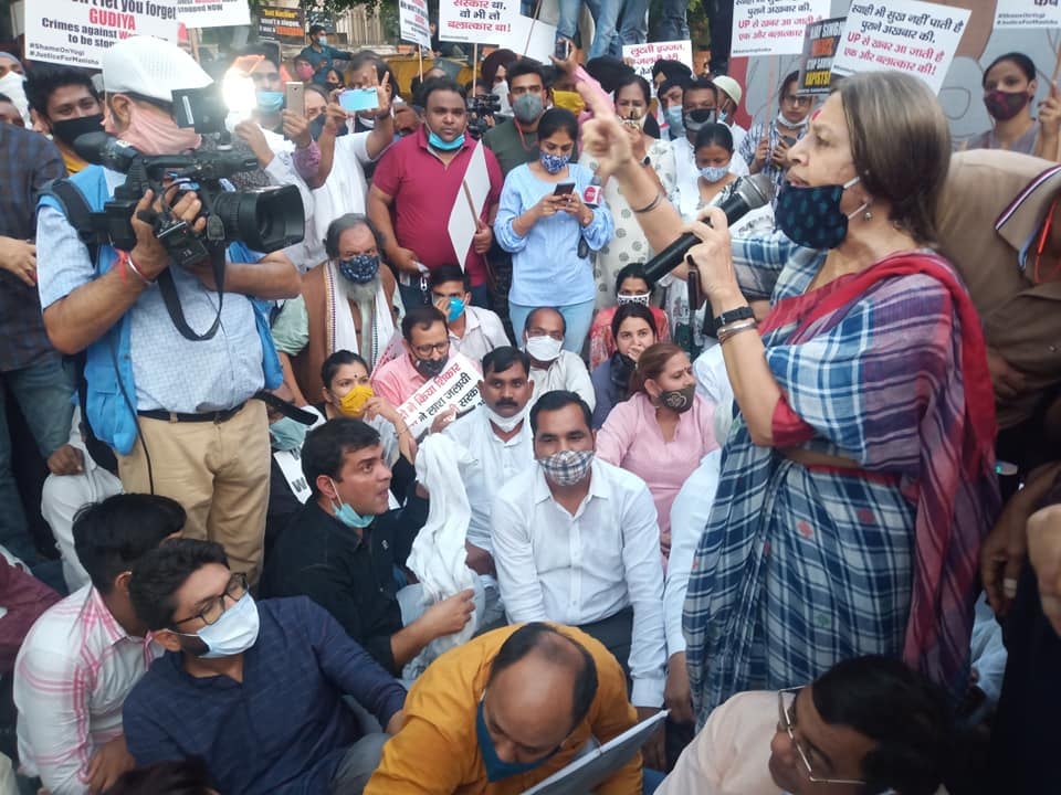 New Delhi: Opposition leaders, women’s organizations, student groups and hundreds of people gathered at the Jantar Mantar on Friday, demanding justice for the Hathras rape victim who succumbed to her injuries on Tuesday at Safdarjung Hospital.
