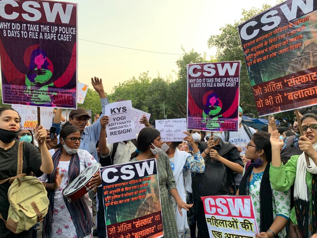 The protesters condemned the Yogi Adityanath-led Uttar Pradesh government for failing to take quick action on the matter, as well as for the attacks on those who demanded justice for the Dalit woman earlier.