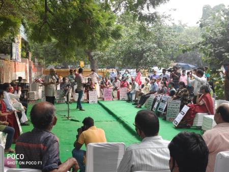 In Delhi, the protest was held in Jantar Mantar, bringing together workers from different sections, who sought justice for the marginalised sections of society who were the worst victims of “neo-liberal” policies that encourage land reforms and privatisation.