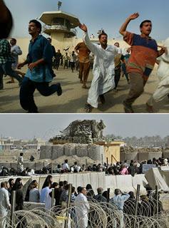 Bottom: Hundreds of Iraqis whose relatives were held in Abu Ghraib demanded to see them after the release of pictures showing prisoners being humiliated by American forces. (Photo: Anja Niedringhaus/AP). http://atwar.blogs.nytimes.com/2009/02/21/abu-ghraib/