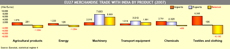 Of the total EU India trade, Agriculture forms a very small component. India ranks around 12th in EU list of top trading partners in Agriculture. On the export side however, India ranks even lower. Of total EU agricultural exports to the world, India ranked 41st in 2007.