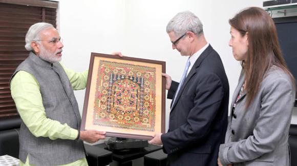 Narendra Modi, left, meets Israeli Ambassador to India Alon Ushpiz, center, in January 2013 (Photo: www.narendramodi.in)