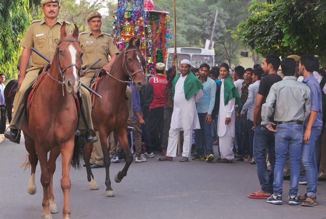 4th November [Muharram] (Bawana): The Muharram procession, confined to JJ colony, is held under heavy police presence as a result of pressure from secular organizations. Students from JNU, however, are not allowed to enter Bawana by the police citing the sensitive situation in the area. Some students are detained.