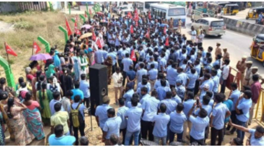 “The government of Tamil Nadu and the labour welfare department are acting in favour of the big corporates, betraying the interests of the workers. The police too joined hands by resorting to illegal detention of the workers and union leaders during the previous strike. The DMK government must change its policies to ensure the rights of the workers are protected”, Muthukumar said.
